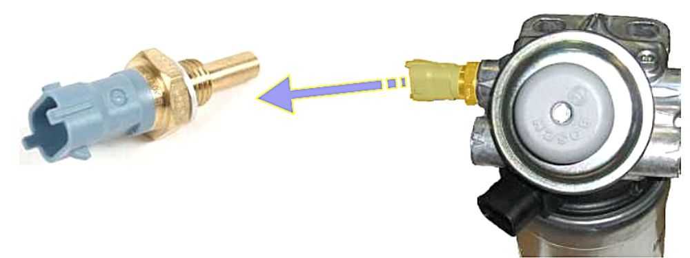 Рис. 93. Внешний вид датчика температуры топлива и его размещение на ФТОТ
