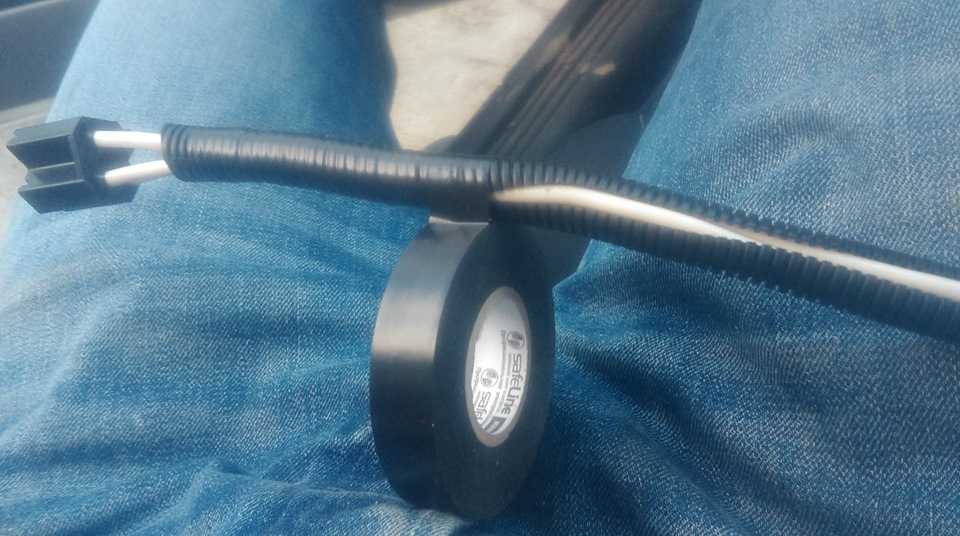 Все эти 4 провода я уложил в гофру и для порядка обмотал изолентой.