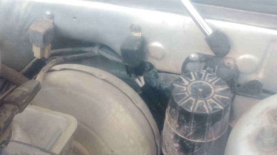 Затем отгибаем его в сторону и зацепляем на заранее подготовленный проводок, привязанный к петле капота!)) (критически удобная вещь, мне подсказал это бывший хозяин машины).