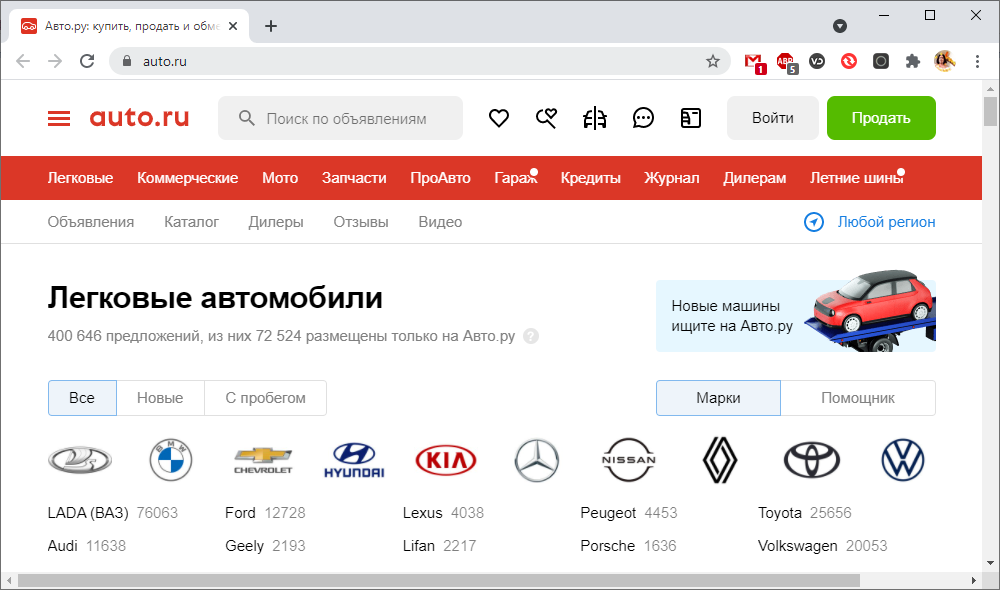 - Перейти на https://auto.ru/.