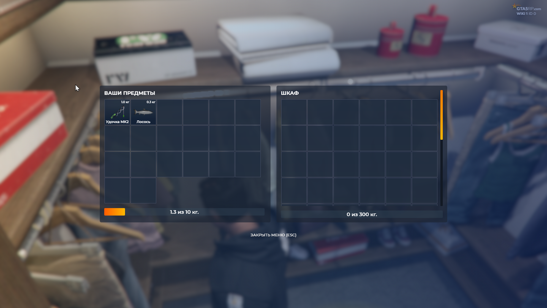 Шкаф представляет собой хранилище для вещей игрока вместимостью в 60 слотов и 300кг. Приобретается за 3.500$ в меню дома, либо же приобретается в магазине мебели, в случае если у Вас куплен интерьер.