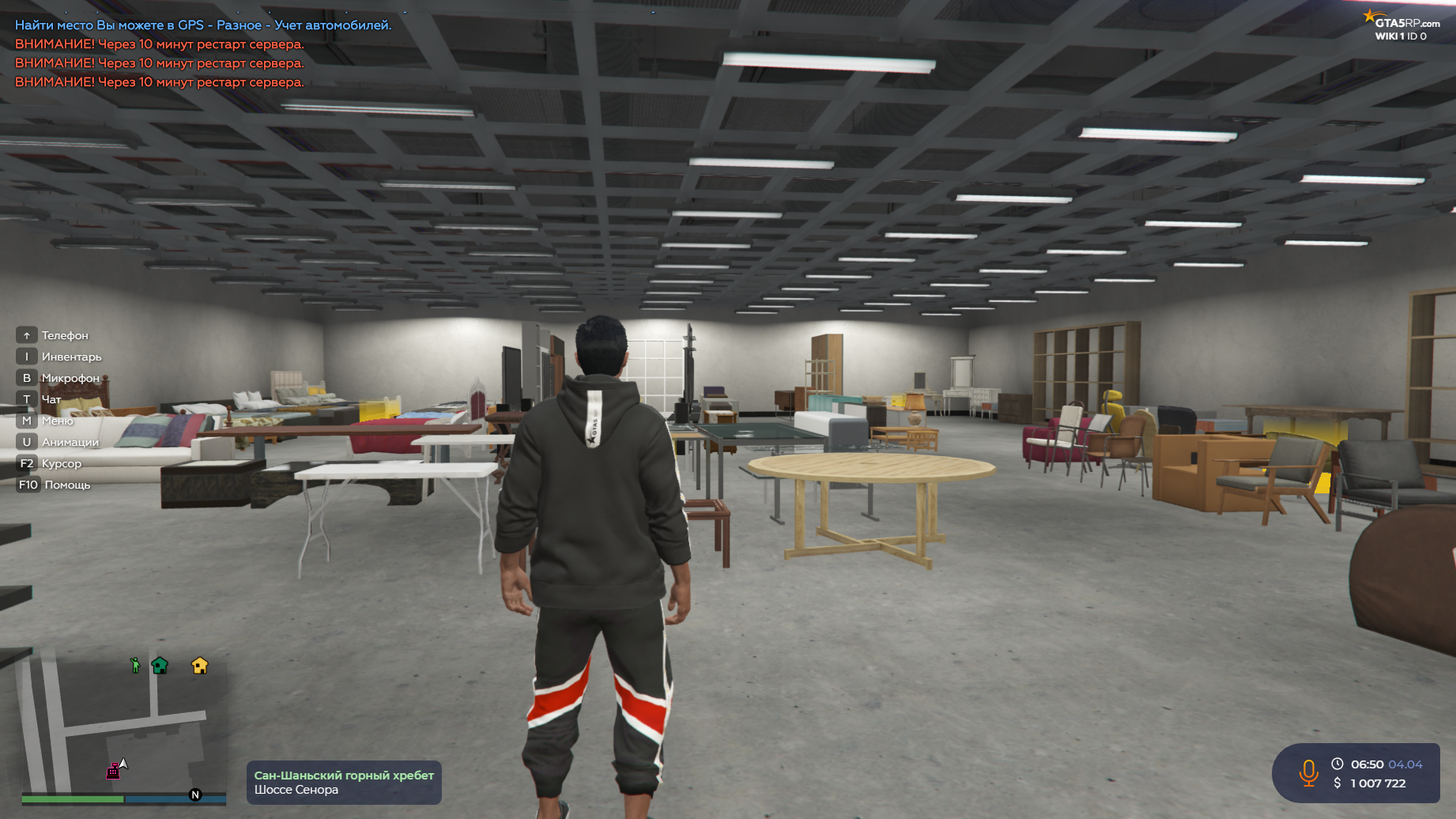 Приехав в магазин Вы сможете купить мебель, которая продается в разных категориях. Данная мебель не занимает какого-либо места в инвентаре и сразу же отправляется в меню квартиры. Приехав в квартиру, Вы сможете через меню установить имеющеюся у Вас мебель