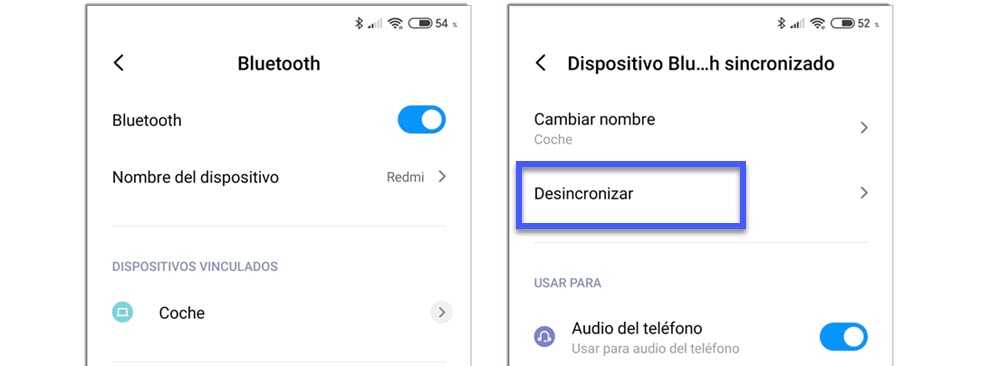 Для этого зайдите в «Настройки» >> Bluetooth, нажмите на автомобильное устройство и выберите «Разъединить». После того, как мобильный телефон был удален из конфигурации, нажмите «Обновить» внизу.