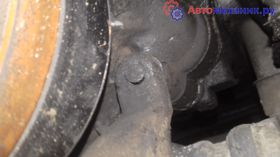 С торца кронштейна установлен натяжной болт. Он двигает крепления насоса в ту или другую сторону. В зависимости от того что нужно сделать ослабить или натянуть ремень. Точнее сказать не двигает а создаёт упор. Чтобы зафиксировать крепление насоса в определенном положении. После того как с его помощью натянется ремень затягиваются крепежные болты. Тем самым создается надежное натяжение ремня.