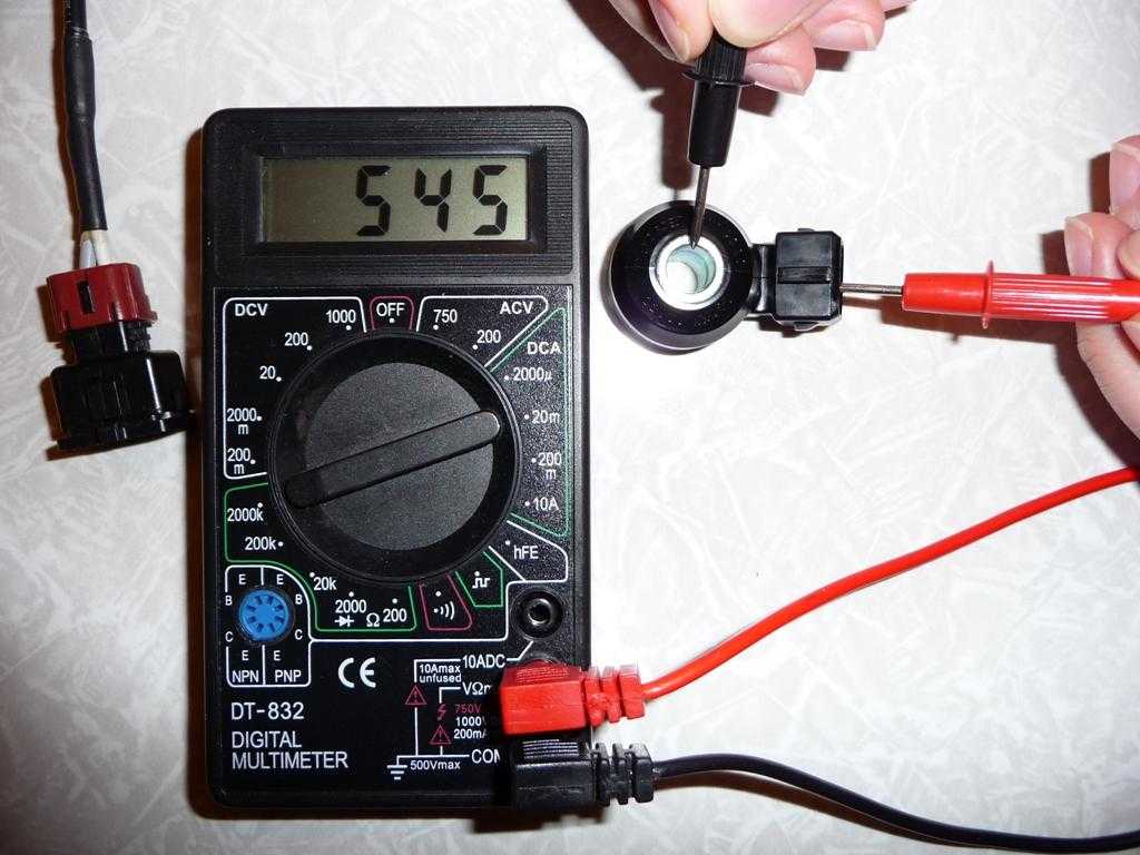 Для проверки напряжения на контактах снятого с головки датчика мультиметр настраивается на милливольты, после чего его щуп «+» замыкается с управляющим контактом, а «-» – с массой проверяемого устройства. К использованию в роли щупа не рекомендуется старая проводка и проводники со скрутками. Лучше чтобы длина провода щупов была минимальной.