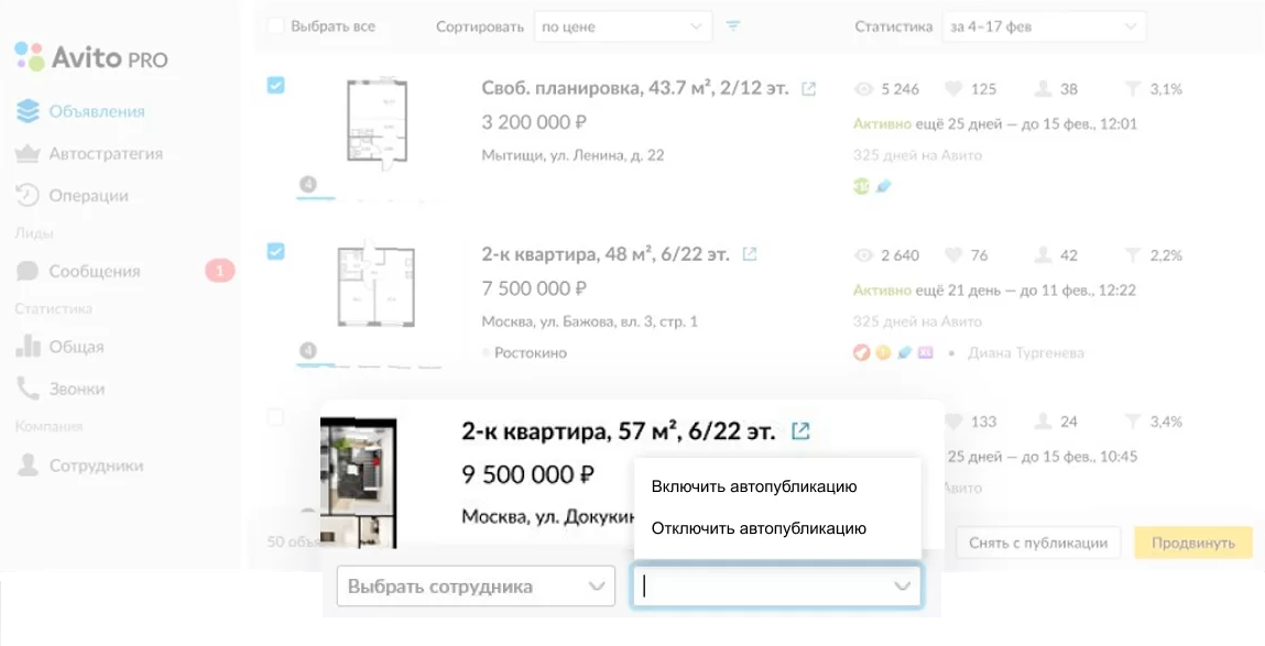 Владелец аккаунта может выбрать, как именно будет продвигаться поданное им объявление: бесплатно — тогда оно окажется в топе поиска только один раз; с помощью опции «Быстрая продажа» — за 369 рублей оно будет подниматься наверх четыре раза каждые двое суток; или посредством «Турбо-продажи» — подразумевает семь «подъёмов» каждый календарный день за 799 рублей.