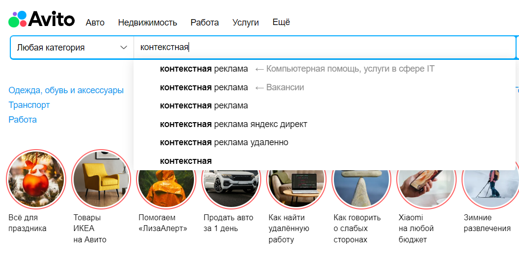 Спрос в категориях меняется в зависимости от сезонности, трендов и текущих интересов пользователей. Отследить, что людям интересно сейчас можно с помощью строки «поиск». Например, при вводе слова «запчасти», мы видим колонку популярных запросов на доске: для автомобиля, для телефона и так далее.