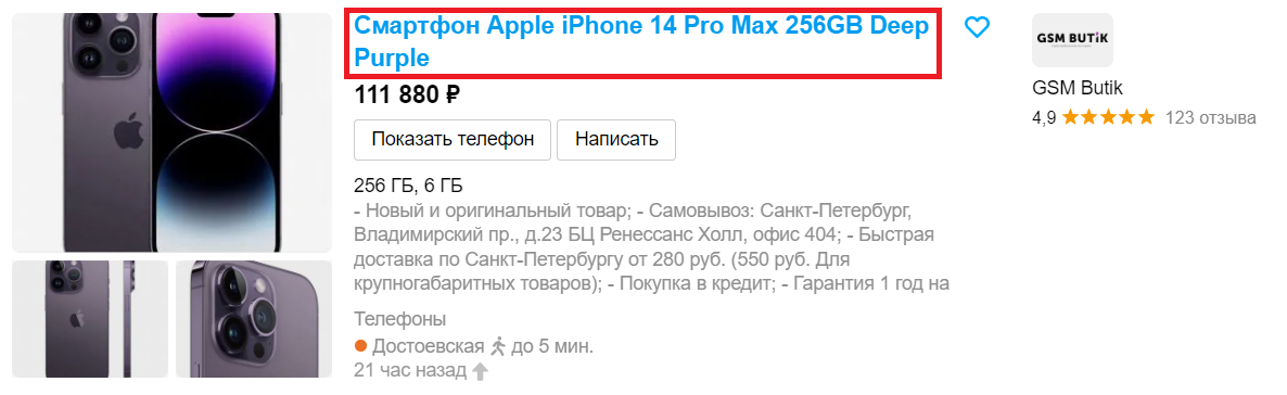 - в названии запрещается указывать, сколько стоит товар или услуга;