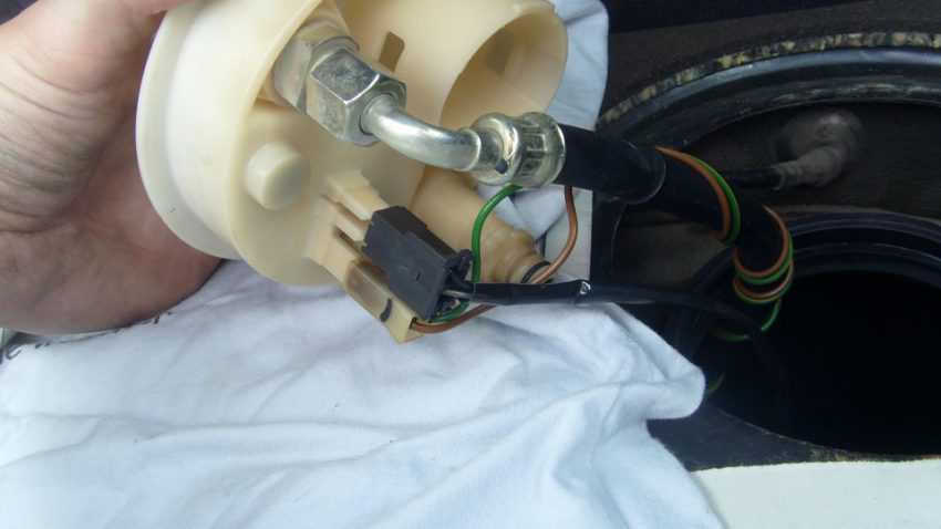 - Если насос не качает горючее, то причиной поломки может быть обрыв кабелей или окисление контактов электропроводки, идущей к мотору помпы. Для устранения дефекта требуется осмотреть клеммы, подключенные к топливному модулю. Загрязнения и окислы очищаются наждачной бумагой. Для поиска точки обрыва кабеля используется тестовый прибор и электрическая схема автомобиля. Новый шнур прокладывается параллельно штатным жгутам, для крепления используется изоляционная лента или пластиковые хомуты.