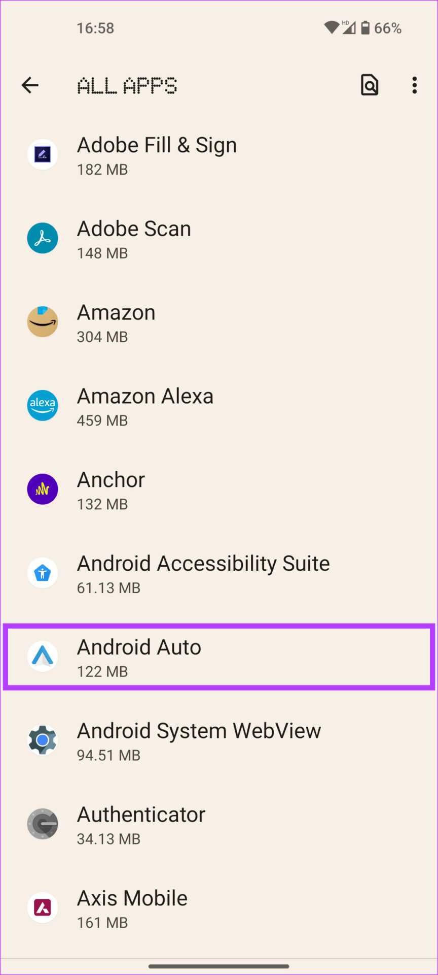 Шаг 3: Прокрутите вниз и выберите Android Auto. Это вызовет настройки приложения.