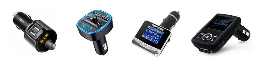 FM-трансмиттер – это отдельное устройство, которое принимает звук со смартфона по Bluetooth, или AUX и передает его на магнитолу через радио (FM-тюнер). Радио на магнитоле настраивается на FM частоту, на которой вещает звук FM-трансмиттер.
