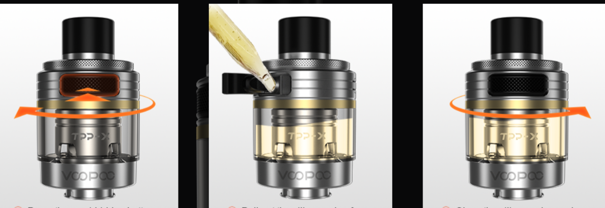 Чтобы заправить девайс жидкостью для парения, сделайте следующее.