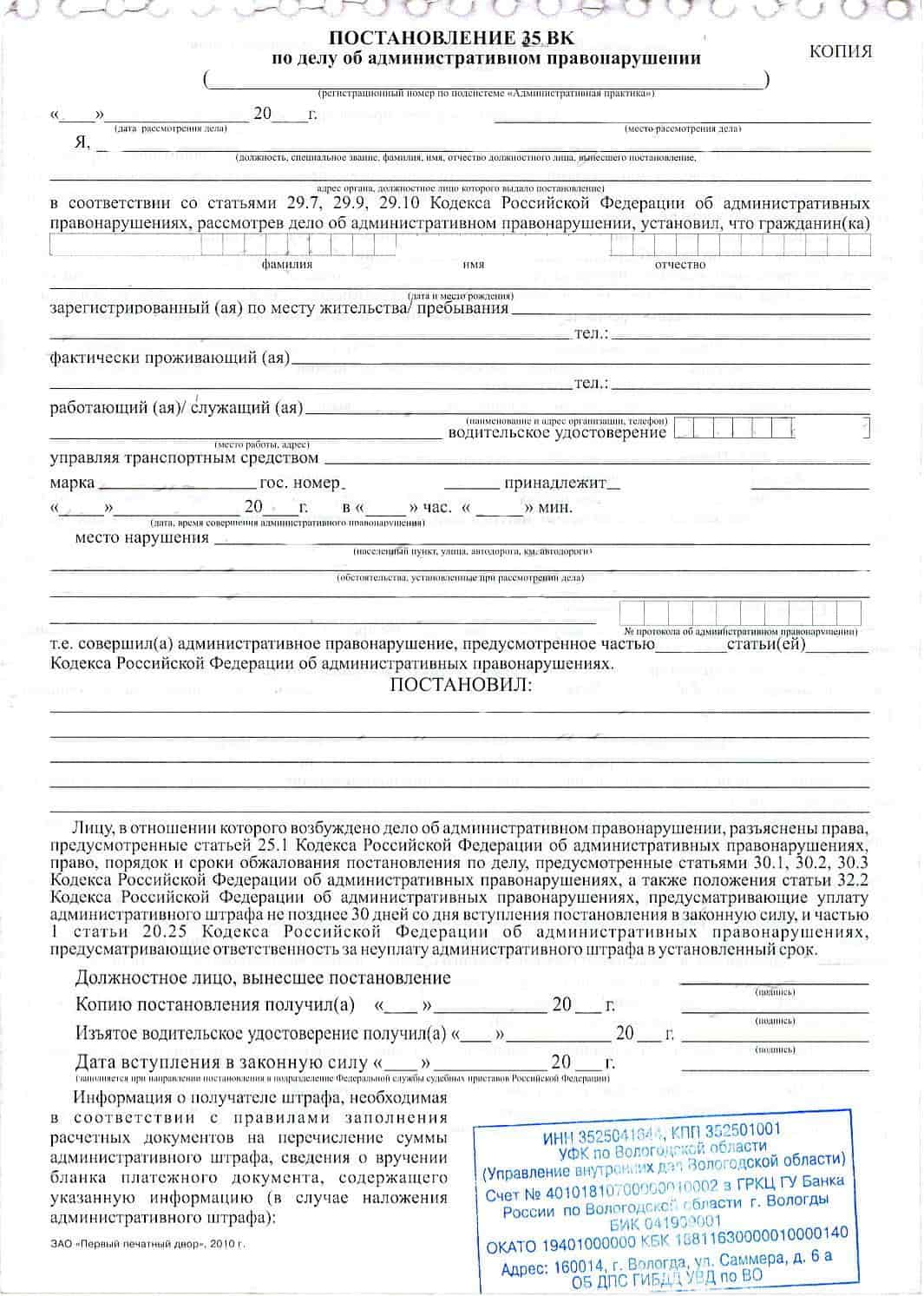 - получения протокола об административном правонарушении с разрешительной отметкой инспектора ГИБДД;