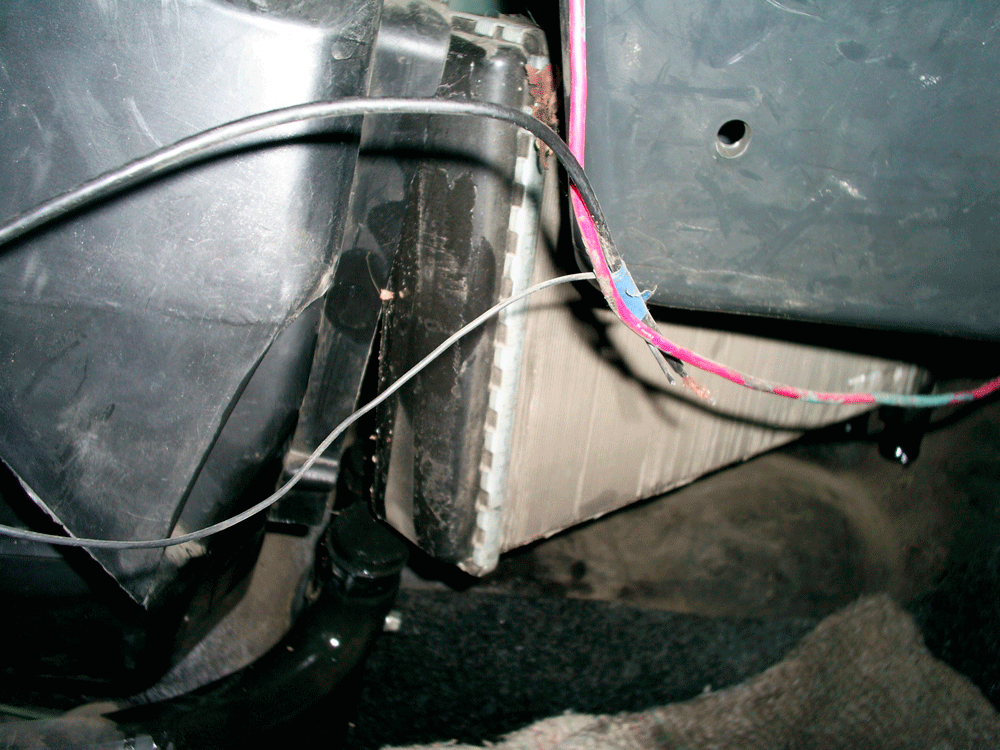 - Далее отсоедините от датчика включения вентилятора системы охлаждения питающий провод, так же отсоедините колодку с питающими проводами и от электродвигателя вентилятора.