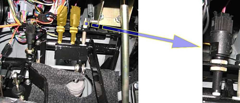 Рис. 94. Внешний вид и расположение датчика педали тормоза на автомобилях УАЗ-31638 Патриот, УАЗ-23638 Пикап, УАЗ-23608 Карго
